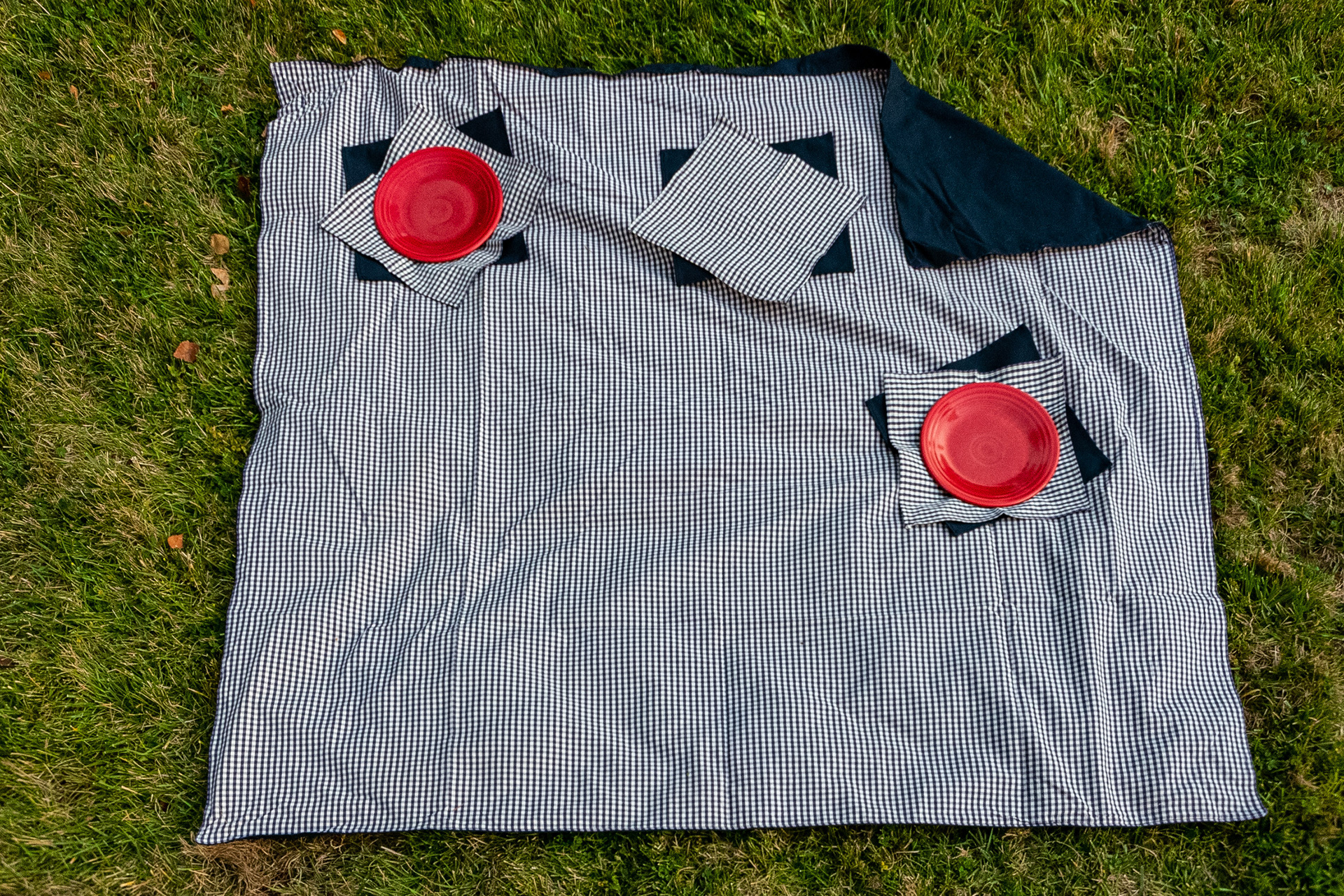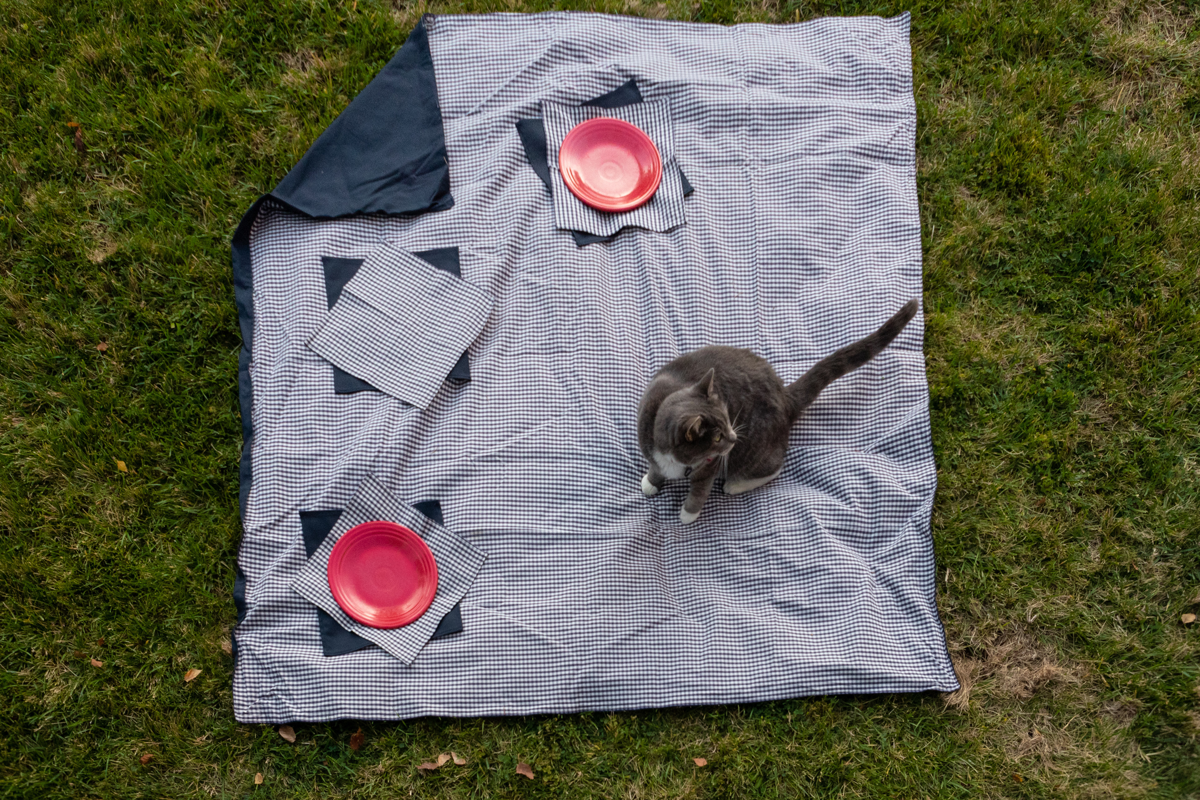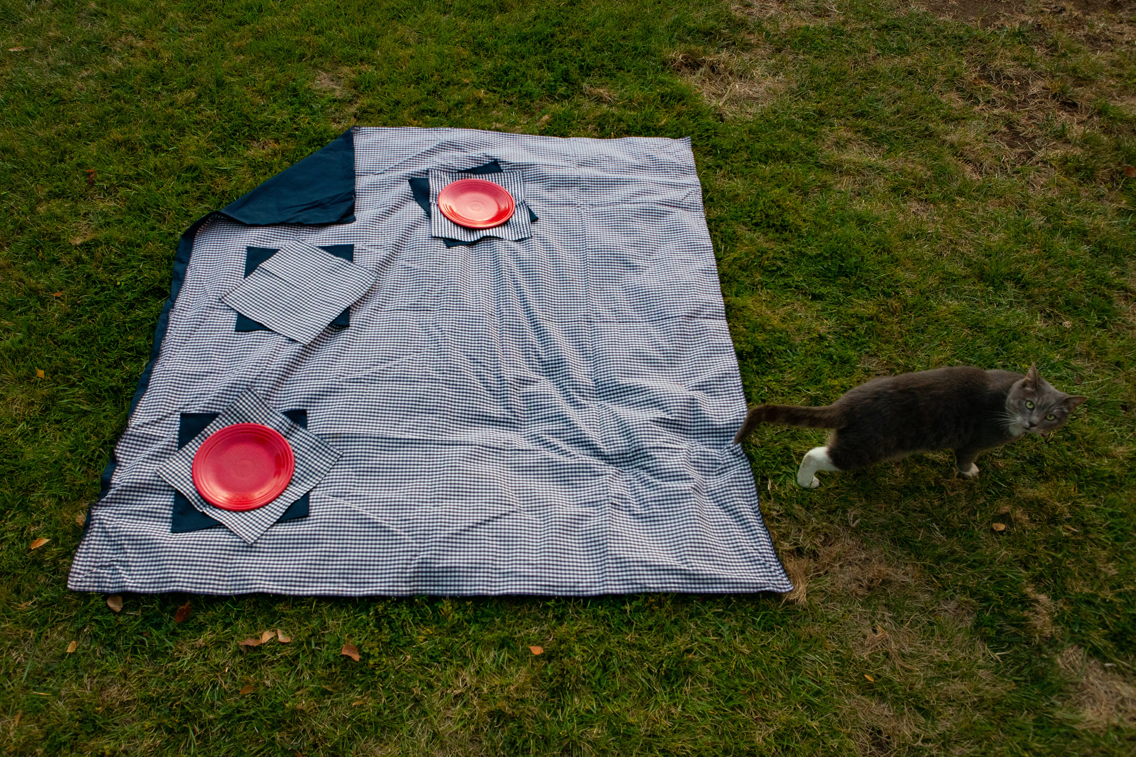 Vising the Italian Alps with my family, I discovered a small fabric store. I fell in love with the blue checkered fabric and decided to create a picnic blanket to incentive my family to eat in nature. After sewing the blanket, I made napkins with fabric remnants to complement the tablecloth.